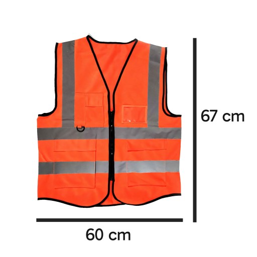 Bezpieczeństwo i ochrona stanowią kluczowe zalety kamizelki dzięki zastosowaniu intensywnego neonowego pomarańczowego materiału o silnym efekcie fluorescencyjnym. Mocne odblaski z każdej strony, gwarantują optymalną widoczność zarówno w ciągu dnia, jak i nocą, oraz o zmierzchu. Lekka, wygodna i przewiewna tkanina sprawia, że użytkownik cieszy się długotrwałym komfortem podczas noszenia, co jest istotne zwłaszcza podczas aktywności fizycznych.
