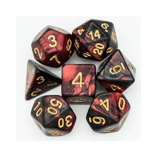 Komplet kości, czyli siedem wysokiej jakości kostek. Dzięki odpowiedniemu wyważeniu są bardzo wygodne w użyciu.