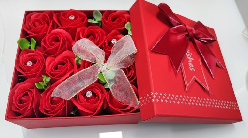 Flowerbox z pachnącymi różami z mydła nadającymi się do kąpieli. Róże ładnie pachną i ślicznie wyglądają....Nie więdną jak prawdziwe kwiaty. Długo będą cieszyć oczy osoby obdarowanej...