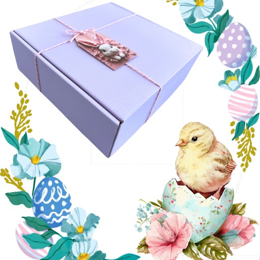 PUDEŁKO PREZENTOWE KARTON OZDOBNY NA PREZENT Wielkanoc Zestaw Wypełnienie