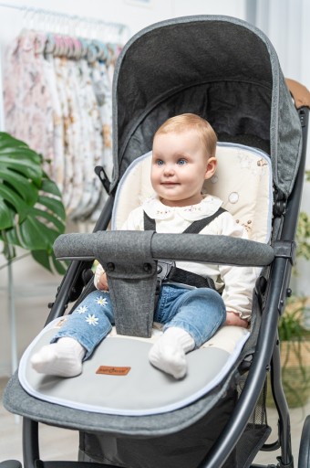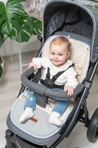 Wkładka została zaprojektowana w atrakcyjnych kolorach i wzorach, co pozwala na łatwą zmianę wyglądu wózka w zależności od nastroju lub okazji. Daje także możliwość użycia pluszowej -cieplejszej lub bawełnianej – chłodniejszej strony, dopasowując podłoże do warunków pogodowych i potrzeb dziecka.