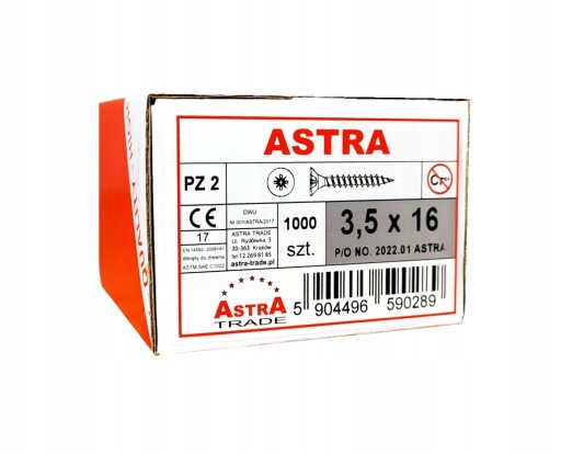 ASTRA wkręty do drewna i płyt wiórowych 3,5x16 100szt
