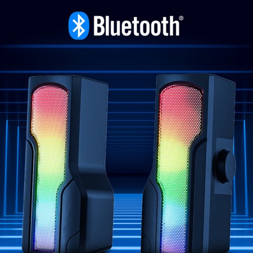 - Podświetlenie RGB: Efektowne oświetlenie z wieloma trybami. Głośniki mogą świecić się w rytm muzyki co zapewnia dodatkowe doświadczenie w trakcie słuchania utworów.
