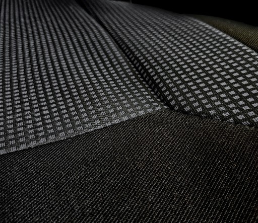 Aby zapewnić stabilność i komfort, elementy wykonane z dzianiny żakardowej zostały podbite 3-milimetrową pianką, która zapobiega przesuwaniu się pokrowców na fotelach.