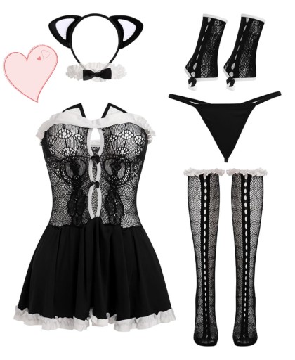 Комплект женского нижнего белья, 6 шт. кот костюм котёнок М/38 сексуальная горничная