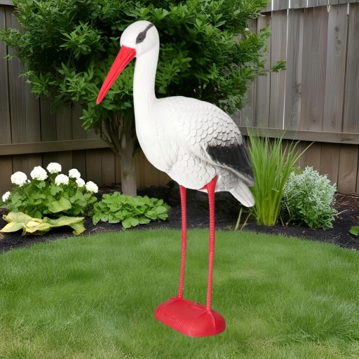 Wykonany z dbałością o każdy detal, ten bocian ogrodowy wiernie oddaje wygląd prawdziwego ptaka – od wyprofilowanego dzioba, przez ułożenie skrzydeł, aż po idealne proporcje.
