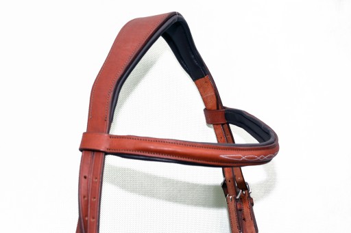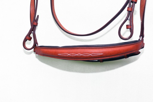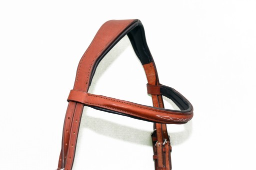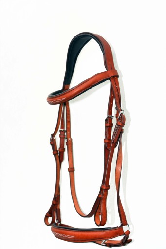 Ogłowi   Anatomiczne profilowane roz.FULL Ogłowie  z naczółkiem Swarovskiego wyprodukowane w zakładzie Rymarskim w Anglii .Wykonane z  najwyższej     jakości   skóry bydlęcej  bardzo miękkiej   i  miłej  w dotyku ,wykonane w całości ze skóry Angielskiej ,  część  potyliczna  i  naczółek  poszyty  miękko  skórą  ,aby zapobiec  obtarciom  .Ogłowie  zapinane i regulowane  jest  na stabilne  sprzączki , wykonane   z bardzo  dobrej   nierdzewnej  stali szlachetnej . Zapraszam do zakupu. Aukcja dotyczy ogłowia widocznego na zdjęciach .