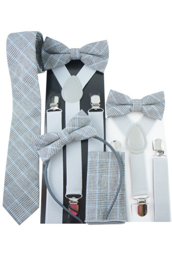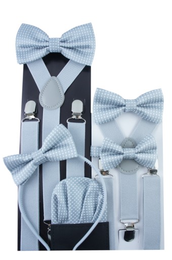 Szelki do spodni i muszka Zestaw męski elegancki na wesele ślub SZARY