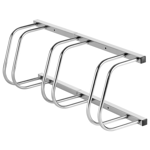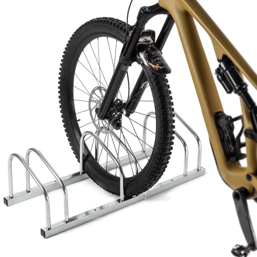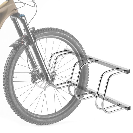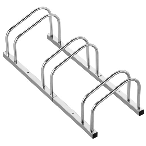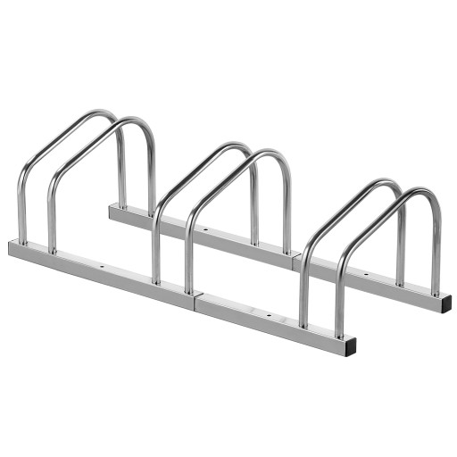Dostępny w wersji 3- stanowiskowej stojak pozwala na wygodne i uporządkowane przechowywanie kilku rowerów w jednym miejscu.