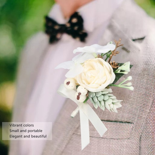 3. Jedwabny kwiat: ta butonierka ślubna wykonana jest z najwyższej jakości jedwabnego materiału, który jest wielokrotnego użytku, trwały i delikatny.