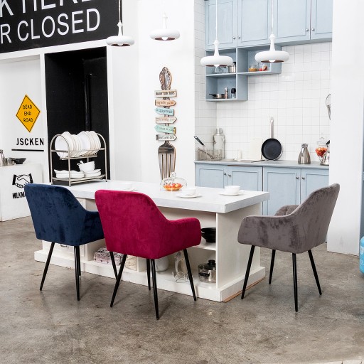 - To krzesło do jadalni jest wygodne i ergonomiczne, z zakrzywionym oparciem, podłokietnikami i wyściełanym siedziskiem. Wyściełane siedzisko pokryte jest aksamitem, a welurowa tkanina jest odporna na rozdarcia i oddychająca.