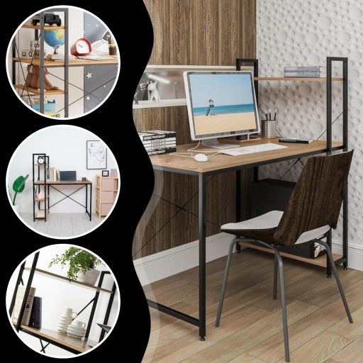 BIURKO METALOWE STOLIK Z REGAŁEM PÓŁKAMI INDUSTRIALNE LOFT DĄB JASNY 120 cm