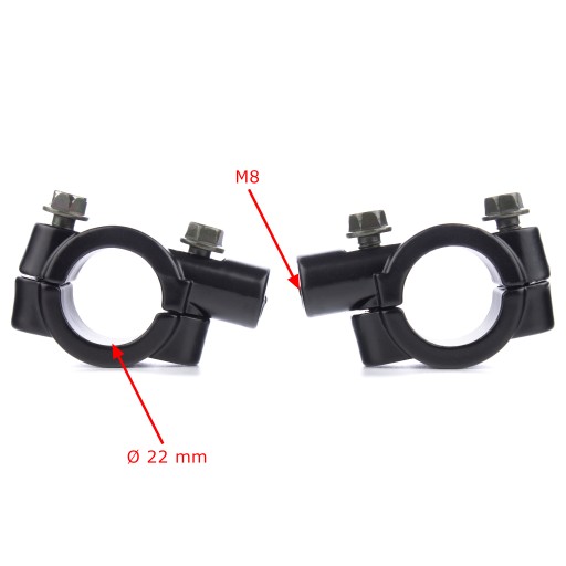 - W zestawie: Adaptery M8 i M10, obejmy 22 mm