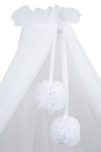 BALDACHIM Z TIULU SZYFONOWEGO DO ŁÓŻECZKA Z POMPONAMI