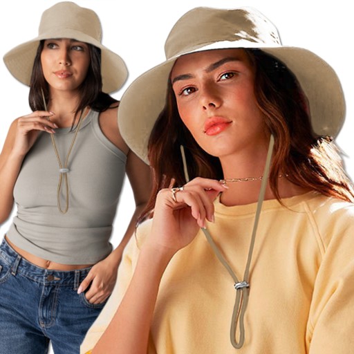 KAPELUSZ LETNI DAMSKI Z DUŻYM RONDEM PRZECIWSŁONECZNY FILTR UPV 50+ BEŻOWY