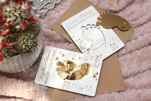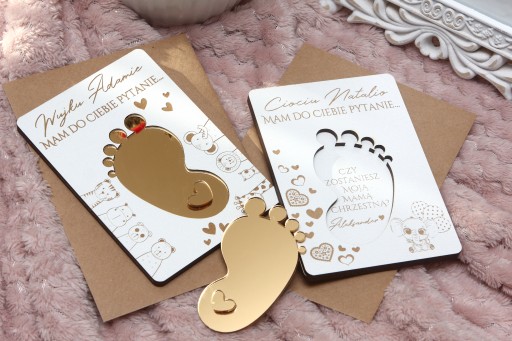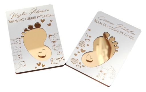 Chcesz w niepowtarzalny sposób zapytać bliskie osoby, czy zostaną ojcem chrzestnym i matką chrzestną Twojego dziecka? A może szukasz oryginalnego pomysłu na ogłoszenie radosnej nowiny? Personalizowana karta niespodzianka z pytaniem to wzruszający i elegancki sposób, by uczynić ten moment niezapomnianym!