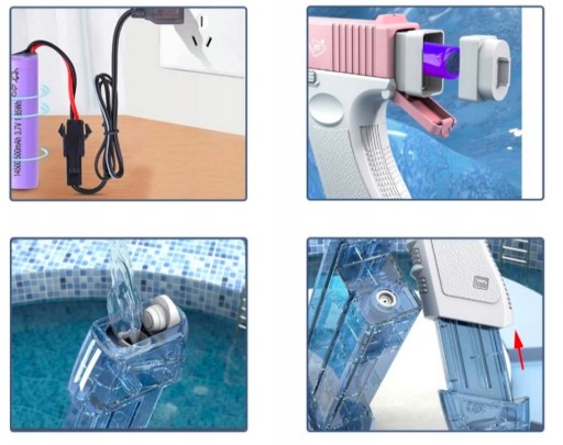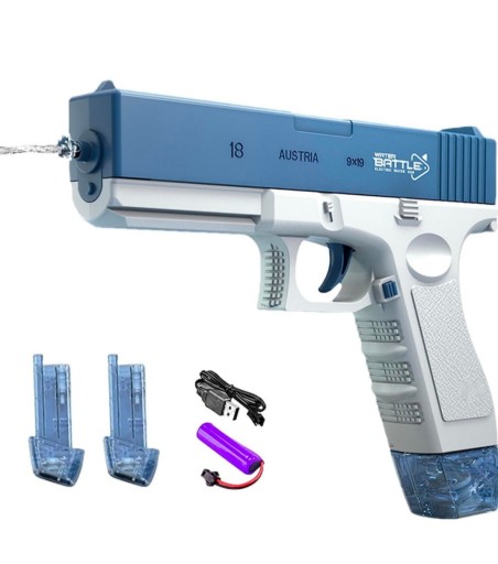 - ELEKTRYCZNY PISTOLET NA WODĘ Ten elektryczny pistolet na wodę pozbył się poprzedniego modelu. Nie trzeba cały czas przytrzymywać pompy wodnej, wystarczy lekko nacisnąć spust pistoletu wodnego, a woda będzie rozpylana w sposób ciągły. Konstrukcja elektrycznego pistoletu na wodę z jednym przyciskiem zapewnia wygodę użytkowania dla dzieci.