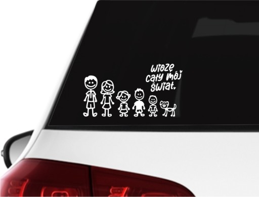 Naklejka RODZINA W AUCIE Wiozę Cały Mój Świat Dzieci *WZORY *KOLORY
