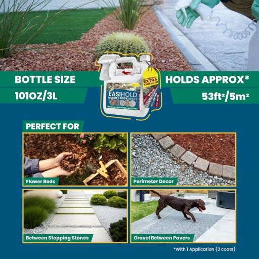 Łatwy w aplikacji: Nasza specjalna formuła szybko schnie i zapewnia pełną ochronę przez 12 – 36 miesięcy. Pożegnaj się z wypłukiwaniem podczas ulewnego deszczu i utrzymuj ściółkę na miejscu, nawet w przypadku dmuchawy liści.