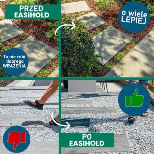 Estetyczny wygląd: Easihold to idealne spoiwo do stosowania w dekoracyjnych rabatkach kwiatowych, w otoczeniu drzew, do kamyków w przestrzenie między dużymi płytami chodnikowymi.