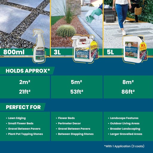 Easihold spoiwo do wiązania kamieni, kory i żwiru na obrzeżach, tarasach i ścieżkach ogrodowych.