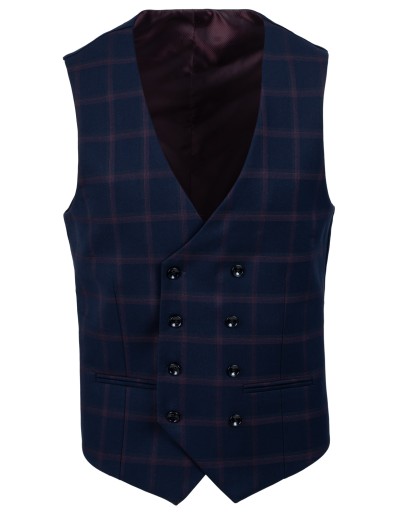 Kamizelka męska elegancka granatowa w krate do garnituru wizytowa - 58
