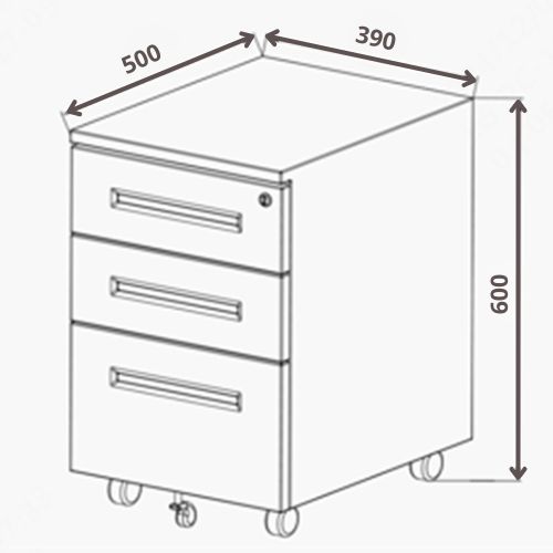 Контейнер для стола для настольного шкафа на колесах мобильный металлический замок блэк -метал