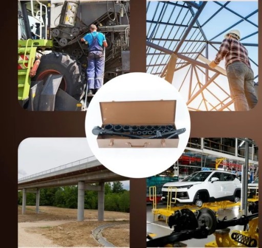 Zestaw umożliwia pracę wymagającą bardzo dużych obciążeń i precyzji, pozwala wykonywać wiele czynności serwisowych związanych z odkręcaniem i przykręcaniem połączeń gwintowych o różnych rozmiarach nominalnych.