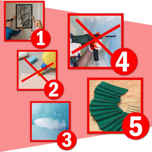 ✔️ za pomocą super mocnych samoprzylepnych taśm montażowych - wystarczy odkleić warstwę ochronną taśmy i nakleić obraz na ścianę