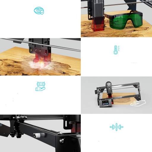 - RAY5 20W maksymalna wydajność cięcia to sosna 25mm i akryl 35mm, stal nierdzewna 0.05mm