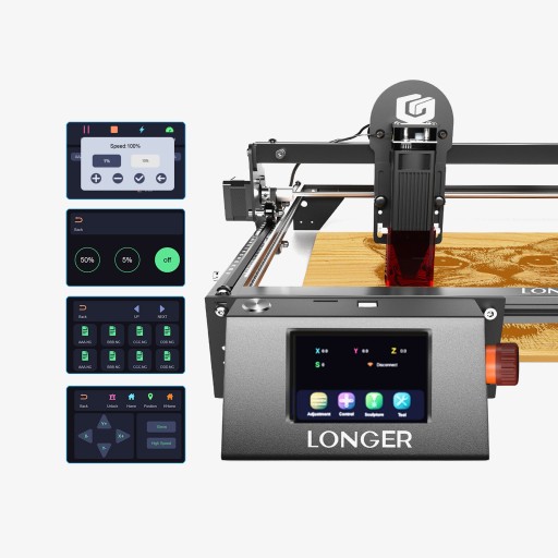 RAY5 jest wyposażony w 3.5-calowy ekran dotykowy, oferujący płynną nawigację i sterowanie. Obsługuje trzy metody połączenia: USB, kartę TF i sieć WIFI offline. Dodatkowo, aplikacja mobilna "MKSLaser", dostępna zarówno na urządzenia z systemem Android, jak i iOS, zapewnia użytkownikom wygodę sterowania Longer Ray5 bezpośrednio ze smartfona. Oprócz zwykłej kontroli, ta aplikacja umożliwia użytkownikom edycję obrazów i dostosowanie parametrów grawerowania w podróży, zapewniając elastyczność i wydajność w zadaniach grawerowania