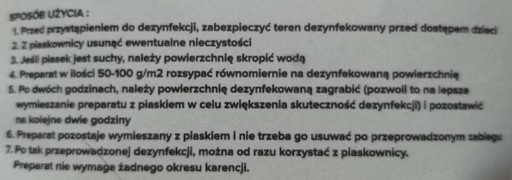 PREPARAT DO DEZYNFEKCJI PIASKOWNIC, PIASKU, PLAŻ, PLACÓW