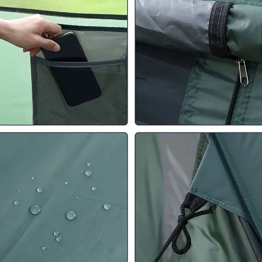 ✅ 2 drzwi po obu stronach namiotu z zamkami błyskawicznymi i moskitierami