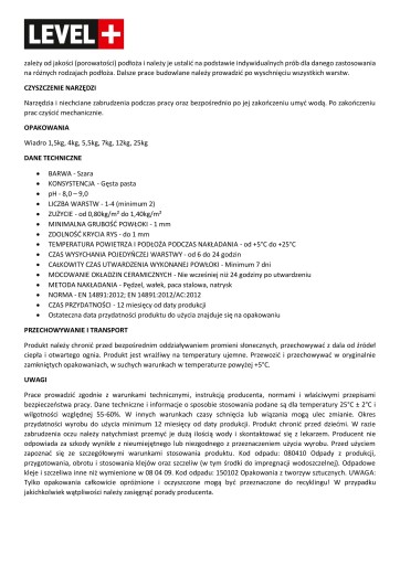 - ZUŻYCIE - od 0,80kg/m² do 1,40kg/m²