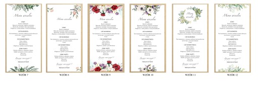 DO MENU MAMY W SWOJEJ OFERCIE RÓWNIEŻ WINIETKI ORAZ NUMERY STOŁÓW W TYCH SAMYCH WZORACH.