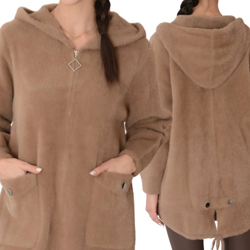 PŁASZCZ ALPAKA DAMSKA KRÓTKA MODNA WYGODNA SUWAK KAPTUR SPORT C KARMEL 2343