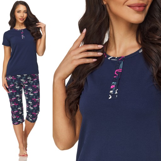 PIŻAMA BAWEŁNIANA DWUCZĘSCIOWA DAMSKA Z KRÓTKIM RĘKAWEM ORAZ Z 3/4 SPODNIAMI NA GUMCE