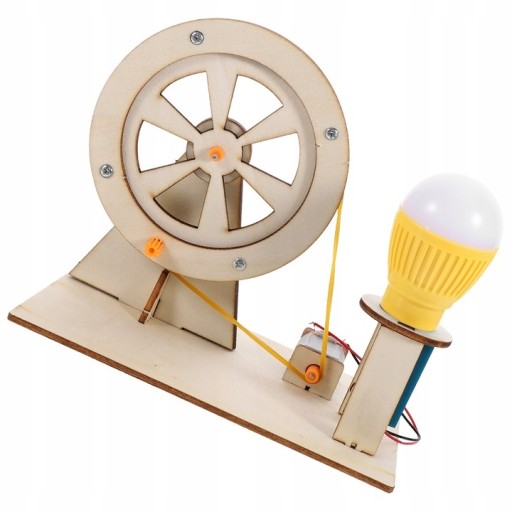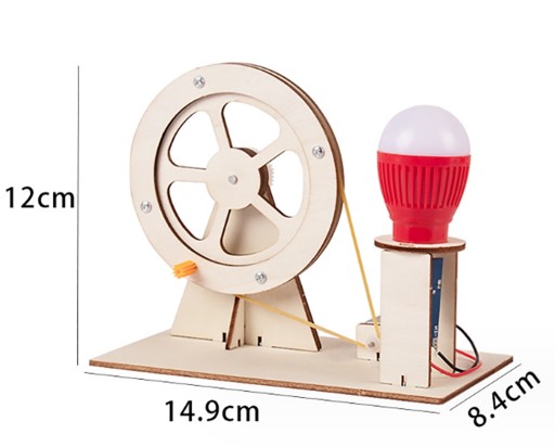 Model po zmontowaniu obrazuje jak działa generator prądu elektrycznego a wyprodukowana energia jest ukazana przez świecącą lampkę LED.