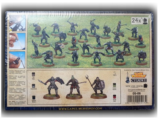 This plastic boxed set contains 40 components, with which to build 24 Morannon Orcs: 12 with hand weapon and shield, and 12 with spear and shield. This set comes with 24 25mm round bases. These miniatures are supplied unpainted and require assembly - we recommend using Citadel Plastic Glue and Citadel Paints.