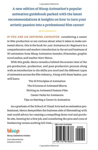 A new edition of Bloop Animation’s popular animation guidebook packed with the latest recommendations and insights on how to turn your artistic passion into a professional film career! If you are an aspiring animator considering a career in film production or are curious about what it takes to make animated shorts, this is the book for you! Animation for Beginners is a comprehensive and modern introduction to the art and business of 3D animation from Bloop Animation founder, filmmaker, graphic novel author, and teacher Morr Meroz. With this guide, Meroz reveals a behind-the-scenes view of the pre-production, production, and post-production process along with an introduction to the skills you need and the different types of animation across the film industry. Along with these basics, you will learn: The 12 Principles of Animation The 8 Genres of Animated Shorts Writing an Animated Feature Film Career Paths for Animators and Tips on Starting a Career in Animation As a graduate of the School of Visual Arts and an animation professional, Meroz demystifies the business side of filmmaking with real-world advice for creating a compelling demo reel and portfolio site, hunting for a first job, and considering the pros and cons of freelancing versus working full-time. This is a perfect gift for illustrators, graphic designers, film students, and film industry professionals interested in how to “make it” as animators.