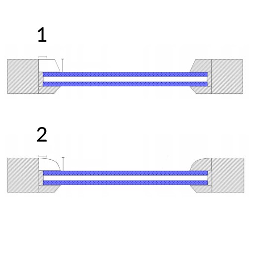 ✅ Prowadnice zawarte w zestawie są całkowicie płaskie i nie są przystosowane do zaokrąglonej listwy przyszybowej.