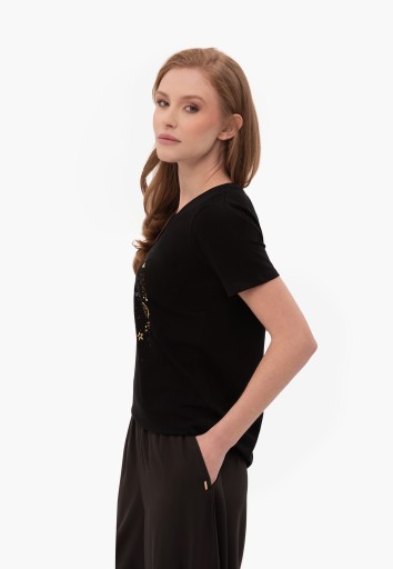 DAMSKA KOSZULKA BAWEŁNIANA Z NADRUKIEM CZARNA VOLCANO T-ASTRO L