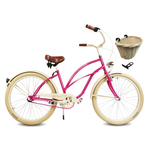 Rower beach Cruiser damski 26 różowy 3 biegi RASPBERRY RoyalBi koszyk