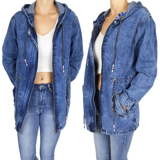 Świetna jeansowa kurtka z kapturem i modnymi przetarciami zapinana na suwak . Można ją wykorzystać w każdej stylizacji, zarówno do klasycznych jeansów i białego T-shirtu na codzienne wyjścia. Jest to zdecydowany must have w każdej garderobie.