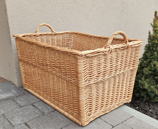 DUŻY kosz wiklinowy na drewno w kolorze NATURALNYM