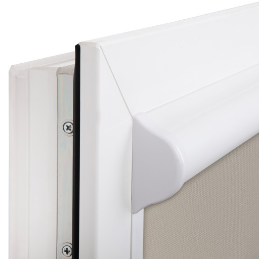 Wybierając roletę w kasecie PVC otrzymasz mechanizm w tej samej tonacji (kaseta, łańcuszek, prowadnice, obciążnik tkaniny).