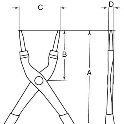 Клещи для внутренних колец, прямые, диаметр 12-25 мм, ушко 1,2 мм.