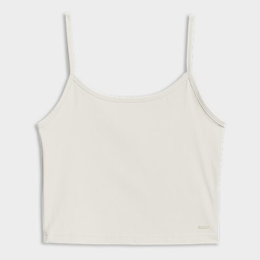 Okrągły dekolt. Cienkie, elastyczne ramiączka bez regulacji.