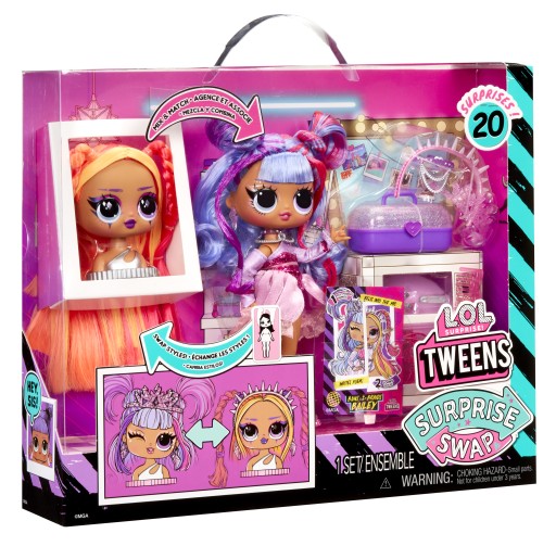 Przedstawiamy zupełnie nowe lalki L.O.L. Surprise Tweens Surprise Swap Fashion Doll, które mają 2 unikalne wyglądy! Innowacyjna funkcja wymiany głowy - dzięki dodatkowej głowie do stylizacji zapewnia wyjątkową personalizację i fantastyczną zabawę włosami!