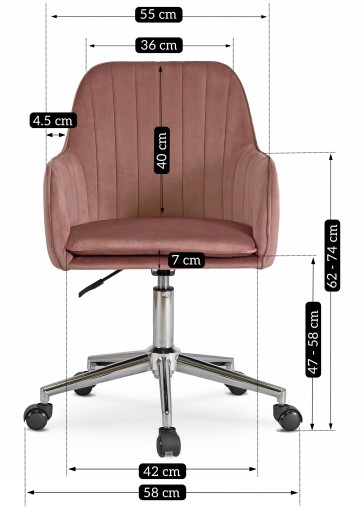 - Fotel welurowy obrotowy TOM w kolorze różowym z chromowanym krzyżakiem
